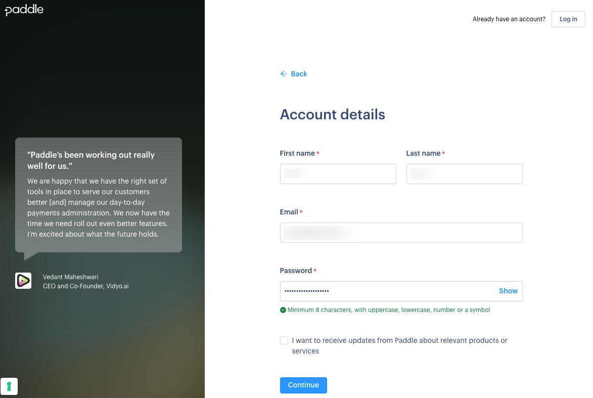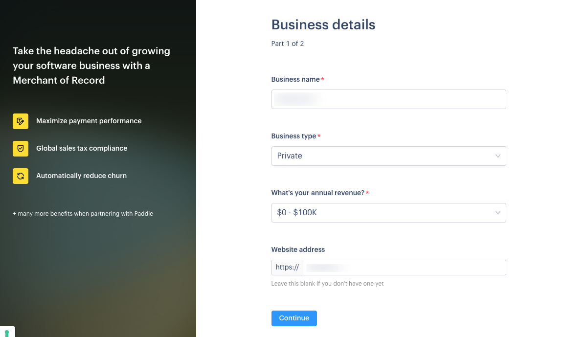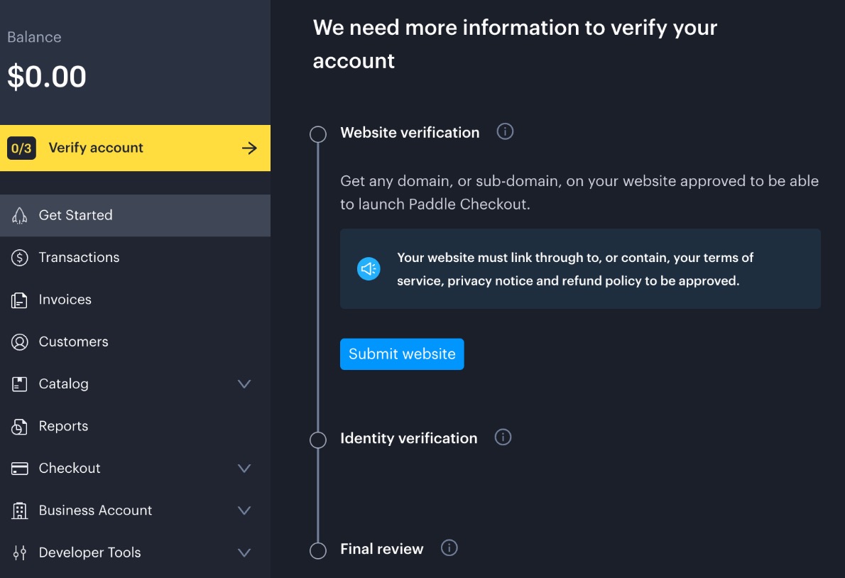 一旦準備好以上資料,您就可以申請 Paddle 正式帳號,開始送審您的企業與網域。